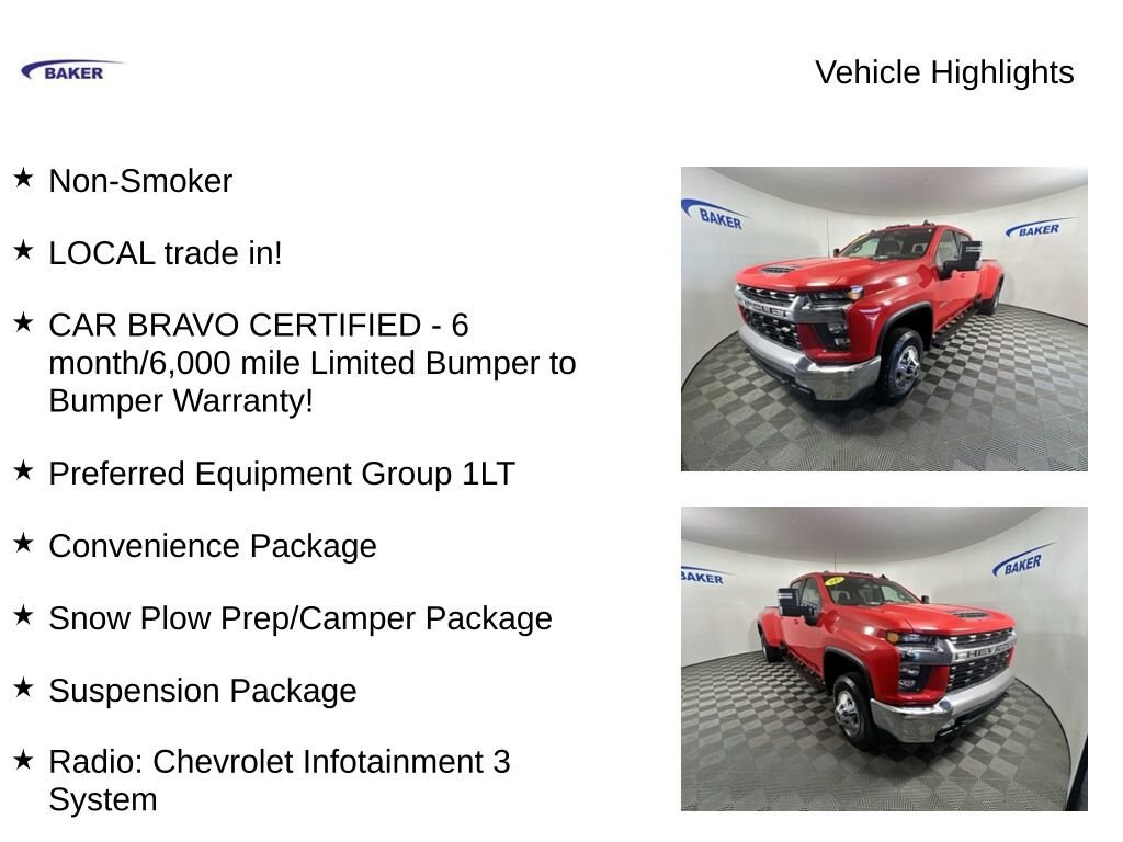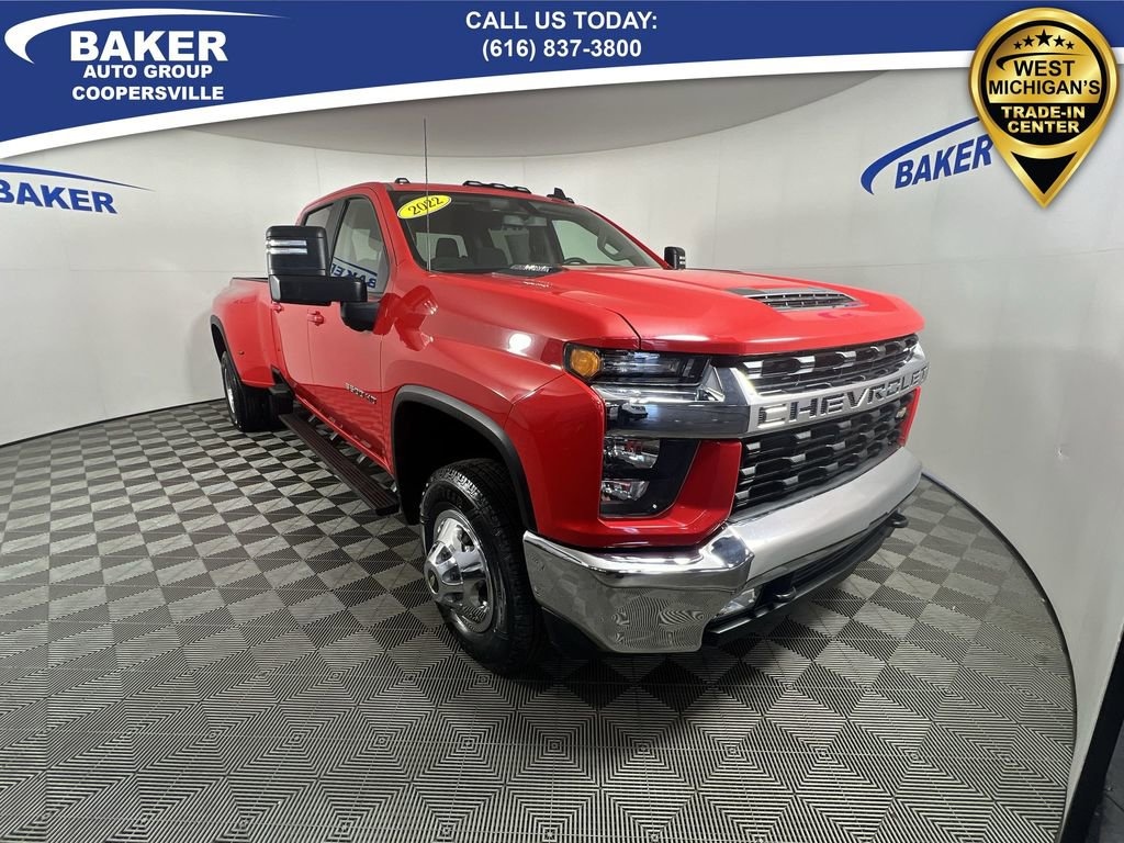 New Price! Red Hot 2022 Chevrolet Silverado 3500HD LT 4WD 10-Speed Automatic Duramax 6.6L V8 Turbodiesel Non-Smoker, LOCAL trade in!, CAR BRAVO CERTIFIED - 6 month/6,000 mile Limited Bumper to Bumper Warranty!, Silverado 3500HD LT, Duramax 6.6L V8 Turbodiesel, 10-Speed Automatic, 4WD, Red Hot, Black Cloth, 10-Way Power Driver Seat Adjuster w/Lumbar, 12-Volt Rear Auxiliary Power Outlet, 2 USB Ports (First Row), 2-Speed Electronic Shift Transfer Case, 220 Amp Alternator, 2nd Row Dual USB Charge-Only Ports, 3.42 Rear Axle Ratio, 4-Way Manual Driver Seat Adjuster, 4-Way Manual Passenger Seat Adjuster, 4.2 Diagonal Color Display Driver Info Center, 6-Speaker Audio System Feature, Apple CarPlay/Android Auto, Black Mirror Caps, Bluetooth® For Phone, Chrome Front Grille Bar w/Molded Grille Inserts, Convenience Package, Deep-Tinted Glass, Dual-Zone Automatic Climate Control, Durabed Pickup Bed, Electric Rear-Window Defogger, Electrical Lock Control Steering Column, EZ Lift Power Lock & Release Tailgate, Front LED Fog Lamps, Front Rubberized Vinyl Floor Mats, Halogen Reflector Headlamps, Heated Driver & Front Outboard Passenger Seats, Heated Steering Wheel, Integrated Trailer Brake Controller, Keyless Open & Start, Leather-Wrapped Steering Wheel, LED Cargo Area Lighting, OnStar & Chevrolet Connected Services Capable, Outside Power-Adjustable Mirrors, Power Door Locks, Preferred Equipment Group 1LT, Radio: Chevrolet Infotainment 3 System, Rear 60/40 Folding Bench Seat (Folds Up), Rear Rubberized-Vinyl Floor Mats, Rear Vision Camera, Remote Keyless Entry, Remote Vehicle Starter System, SiriusXM Radio, Snow Plow Prep/Camper Package, Standard Tailgate, Suspension Package, Wi-Fi Hotspot Capable.
