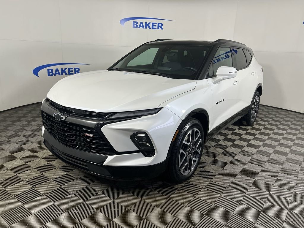 New Price! Iridescent Pearl Tricoat 2023 Chevrolet Blazer RS AWD 9-Speed Automatic with Overdrive 3.6L V6 SIDI Non-Smoker, ONE Owner, no accidents, CARFAX CERTIFIED,, CAR BRAVO CERTIFIED - 12 month/12,000 mile Limited Bumper to Bumper Warranty!, Blazer RS, 4D Sport Utility, 3.6L V6 SIDI, AWD, Iridescent Pearl Tricoat, Jet Black/Nightshift Blue Leather, Adaptive Cruise Control, Driver Confidence II Package, Enhanced Automatic Emergency Braking, HD Surround Vision, Heated Driver & Front Passenger Seats, Heated Steering Wheel, Navigation System, Perforated Leather-Appointed Seat Trim, Power Liftgate, Power Panoramic Tilt-Sliding Sunroof, Preferred Equipment Group 1RS, Rear Camera Mirror, Rear Park Assist w/Audible Warning, Safety Alert Seat, Wheels: 20 Technical Gray Aluminum.