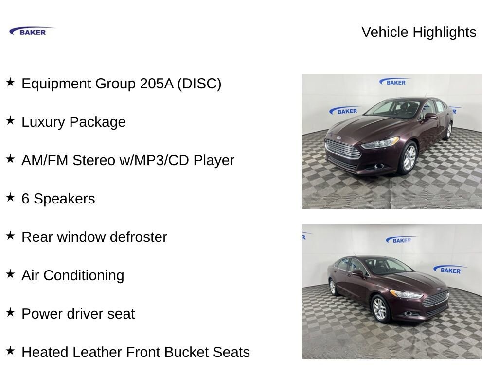 New Price! Bordeaux 2013 Ford Fusion SE FWD 6-Speed Automatic EcoBoost 1.6L I4 GTDi DOHC Turbocharged VCT 4D Sedan, EcoBoost 1.6L I4 GTDi DOHC Turbocharged VCT, FWD, Bordeaux, 17 Aluminum Wheels, 6 Speakers, Air Conditioning, AM/FM Stereo w/MP3/CD Player, Equipment Group 205A (DISC), Heated Leather Front Bucket Seats, Luxury Package, Power driver seat, Rear window defroster.