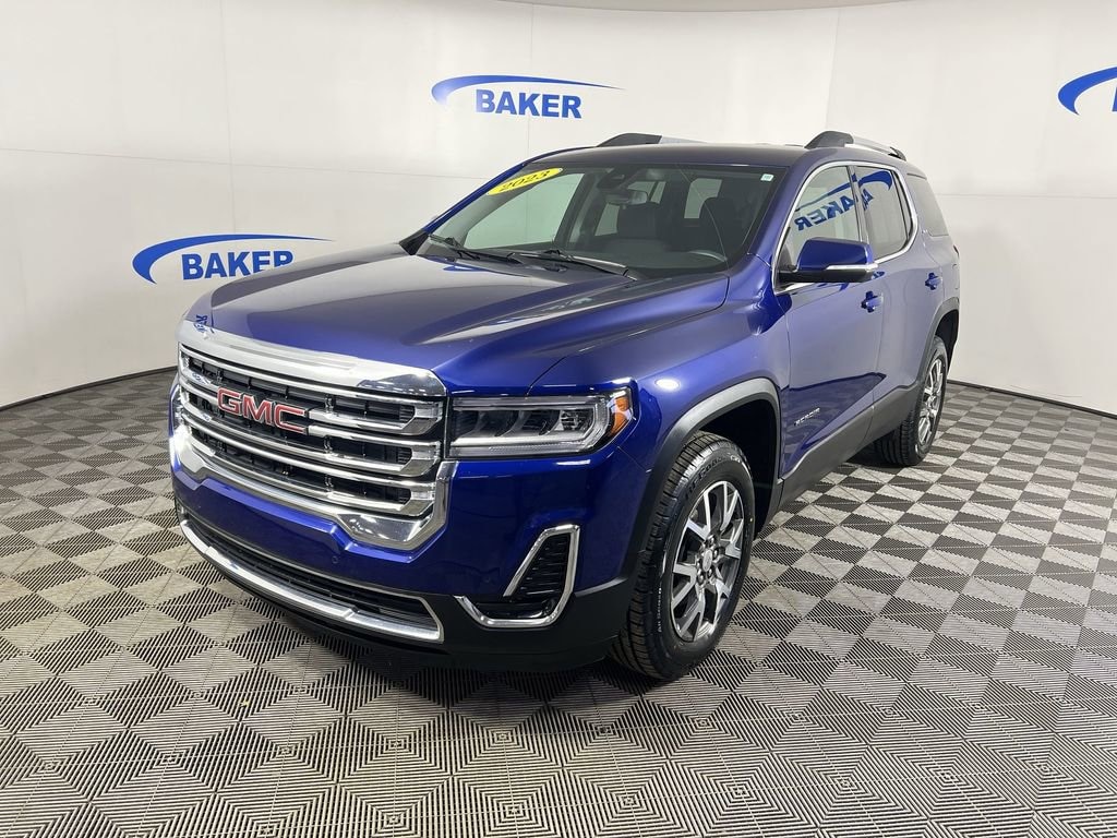 New Price! Ultra Blue Metallic 2023 GMC Acadia SLE AWD 9-Speed Automatic 2.0L Turbocharged Non-Smoker, ONE Owner, no accidents, CARFAX CERTIFIED,, LOCAL trade in!, CAR BRAVO CERTIFIED - 12 month/12,000 mile Limited Bumper to Bumper Warranty!, Acadia SLE, 2.0L Turbocharged, 9-Speed Automatic, AWD, Jet Black Cloth, 120-Volt Power Outlet, 1st & 2nd Row All-Weather Floor Mats, 3rd Row All-Weather Floor Mats, 4-Way Manual Driver Seat Adjuster, 6-Speaker Audio System Feature, 8-Way Power Driver Seat Adjuster, Apple CarPlay/Android Auto, Automatic temperature control, Brushed Aluminum Roof Rails, Driver Convenience Package, Front dual zone A/C, Hands Free Power Programmable Liftgate, Heated Driver & Front Passenger Seats, Heavy-Duty Cooling System, Interior Protection Package (LPO), Power Driver Lumbar Control Seat Adjuster, Preferred Equipment Group 3SA, Radio: AM/FM w/8 Diagonal Multi-Touch Display, Remote Start, SiriusXM Radio, Trailering Assist Guidelines, Trailering Package, Wheels: 18 Machined Aluminum w/Dark Accents, Wireless Apple CarPlay/Wireless Android Auto.
