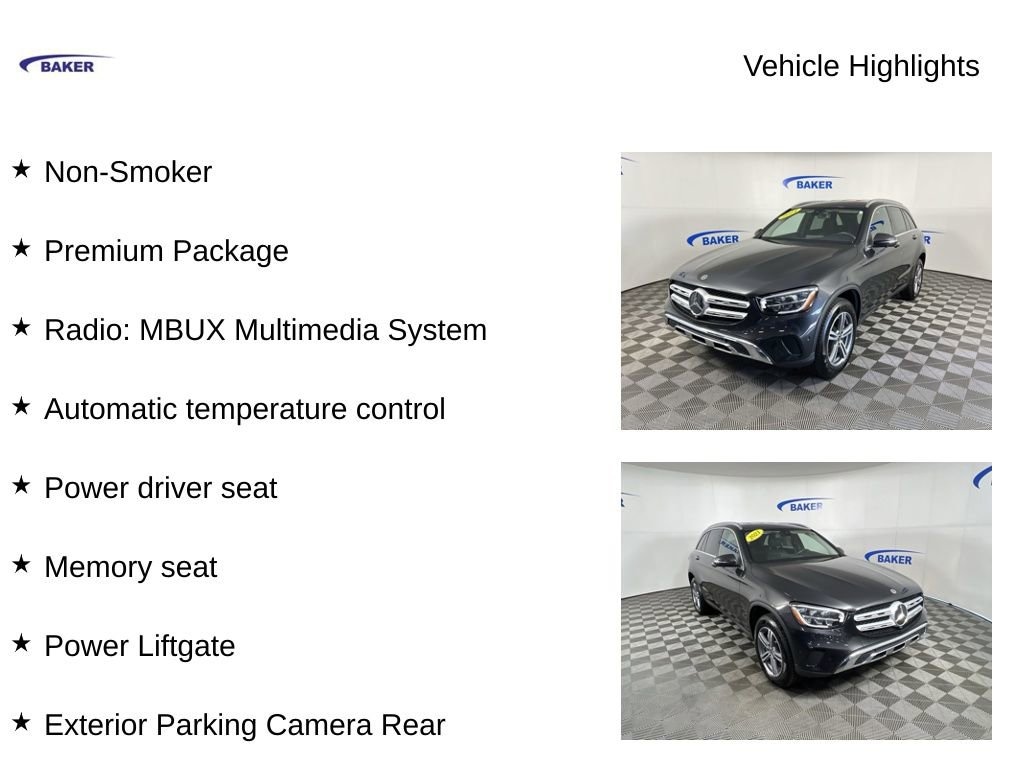 New Price! Graphite Gray Metallic 2021 Mercedes-Benz GLC GLC 300 4MATIC® 4MATIC® 9-Speed Automatic I4 Non-Smoker, GLC 300 4MATIC®, I4, 9-Speed Automatic, 4MATIC®, Graphite Gray Metallic, Silk Beige/Black w/MB-Tex Upholstery, 10.25 Center Touchscreen Display, 4-Way Lumbar Support, 64-Color Ambient Lighting, Apple CarPlay®/Android Auto®, Automatic temperature control, Exterior Parking Camera Rear, Heated front seats, Heated Steering Wheel, Memory seat, Power driver seat, Power Front Seat w/Driver Memory, Power Liftgate, Power passenger seat, Premium Package, Radio: MBUX Multimedia System, Surround View System, Wheels: 8J x 18 ET 38 Split 5-Spoke.